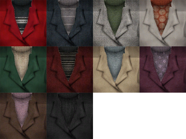 first up is something simple. a little set i made for angela as an adult because i had her running a historical site/ maritime museum. 4 recolors of io's retexture of a webluepeace 4t2 blazer, and 2 shoe swaps of her tbto skirt that she made for trapping because i thought it would be really cute with alternate options too. the first pair is the lace up suede shoes by pforestsims, and the other pair is io's knee boots. there are 8 recolors (including the original colors) of each pair. these are for AF only.