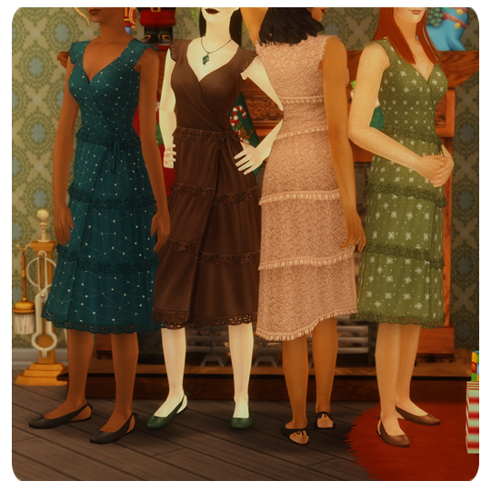next up is a huge set the AL split dress! for TF-EF, using io's bow flats. they come in the original colors, nosferatuman's recolors, pforest's recolors, and a few patterns i did (28 colors total). everything is repositoried to one master texture file as usual, because i don't want multiple versions in my game and i don't want to have to keep certain colors for all ages etc. if you don't want certain colors AT ALL for any age group, you can always open the master texture file in simpe and delete the texture in there if you need to. no default yet but i probably will in the new year!
